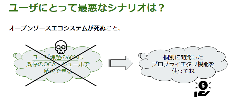 3) 「オープンソースの世界」が死ぬとユーザが不利益を被り、Odooエコシステムとして負のスパイラルに陥る