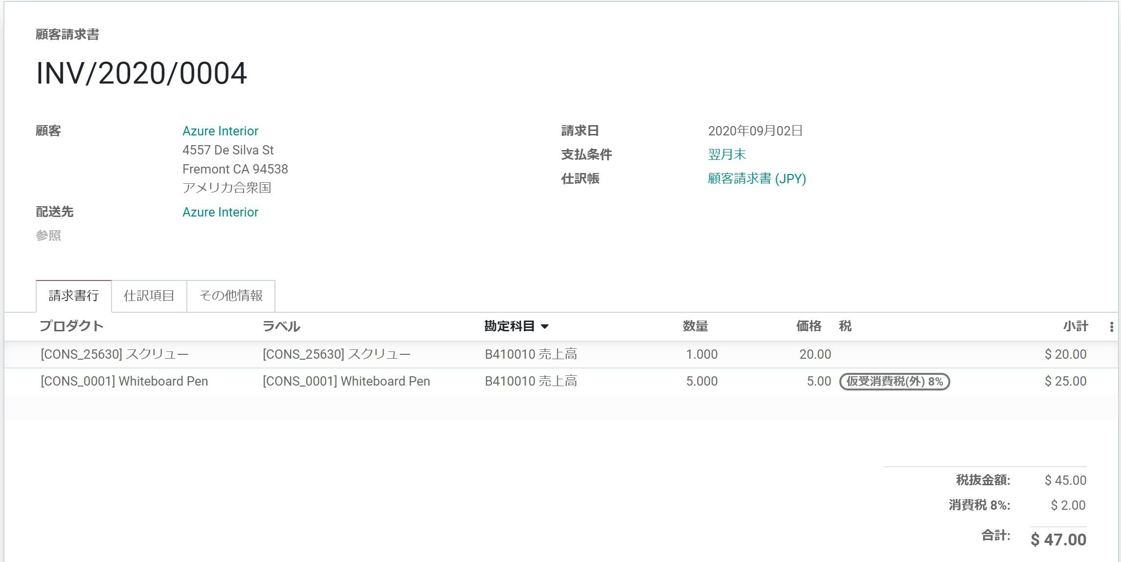 ただし、Odooの標準機能で複数の販売オーダを1つの請求書にまとめる機能がありますので、月締め請求書を出力するタイミングで、まとめて請求処理をすることにより、月締め請求書を作成することができます。