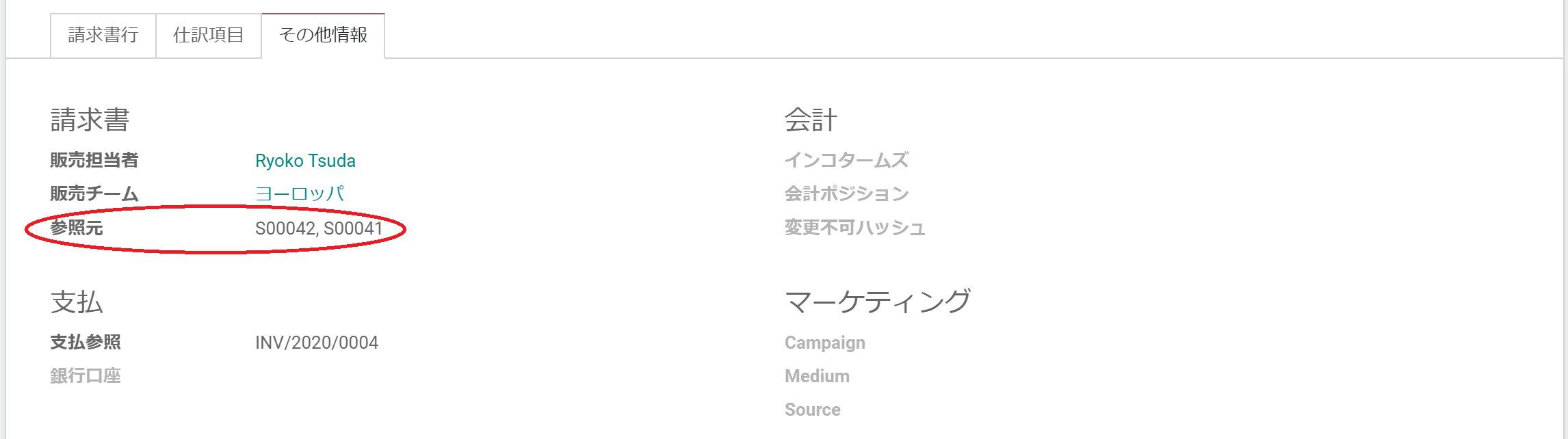 その他情報のタブを見ると、元となった2つの販売オーダが表示されています。